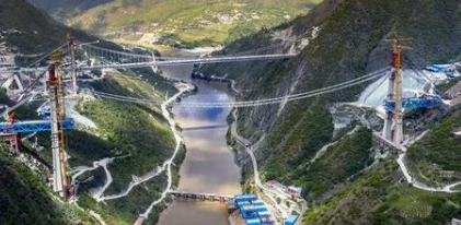 由于起重滑車(chē)、纜索吊機(jī)、起重機(jī)等大中小型起重機(jī)械設(shè)備的共同加入,提高了金沙江特大橋的建設(shè)速度,預(yù)計(jì)3個(gè)月左右可完成大橋的吊裝工作。
